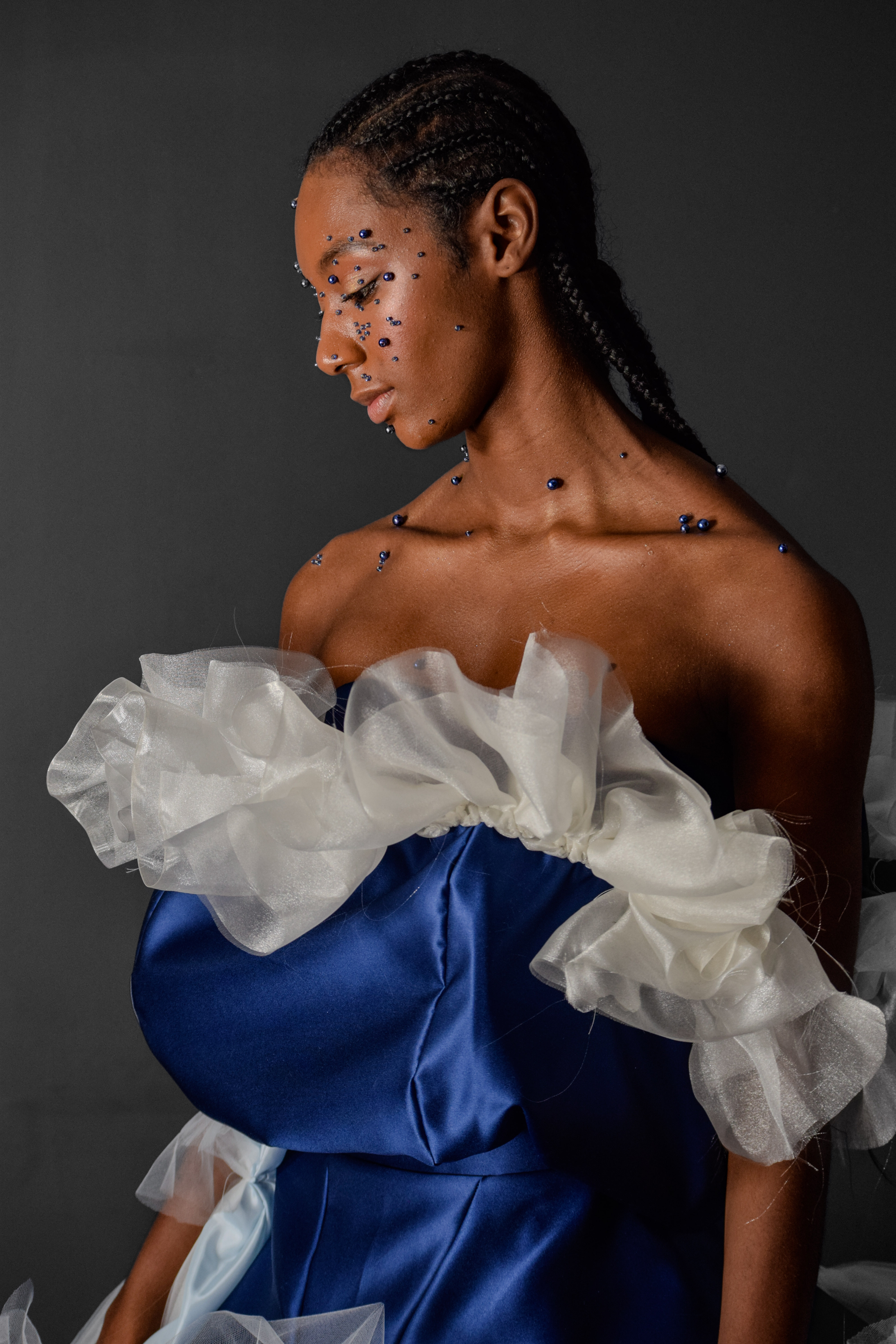 The Darkest Night embraces the pejorative themes purported to be antithetical to the concept of Heaven and good virtue. The invisible hand that guides fate, also known as God, is the anchor to the game of life we live. Each garment is a snapshot as the viewer is thrust from their world into the scenes of another, where a protagonist faces apparitions embodying the corporeal forms of their fear and misfortune. The looks will fall into categories of either the apparitions or the protagonist, showcasing the torment they’ve weathered progressively against their former purity. The final look is that synergy is born out of acceptance in this fictional world where God, deus ex machina, is omnipotent. The protagonist will learn that benevolence and omnipotence cannot coexist and that predestination is as much of a comfort as it is a horror. TDN uses the steering force of RPGs as a method of understanding destiny as an impartial, uncontrollable force in its many shades of grey and ambiguity, anthropomorphizing the concept of Deus ex machina. The collection references the gothic and moody Bloodborne game that portrays a never-ending nightmare RPG with love-craven creatures that are abstractions of the psyche, similar to this collection. My artistic process began with me reviewing very old work I had done before I could sew. It was important that this collection be my opus as a designer and meaningfully incorporate the things I loved when I first started sketching and ideating. Something I found was a dark, moody feel, reminiscent of Alexander McQueen, an idol of mine. Creating a custom scent at Olfactory also helped me with ideating by putting me in a woeful mood. My collections all fall under the name Heaven Concealed. I came up with the name many years ago, and it represents my aversion to hegemony and religious abstractions that are the foundation for rules that define and restrict my life and work as a peculiar person and artist. I wanted to fall back on that message with a story equally as provocative. I found myself visiting galleries and researching modern art with gruesome undertones. A favorite of mine is The Clinic of Dr. Gross by Thomas Eakins. In addition to my visual research, I wanted to become a “paragon of darkness”. My personal style and image have always been a manicured version of an approachable, typical student. When developing TDN, I decided that my expression would need to completely envelop me and be a proponent of my identity instead of through experimentation. I decorated my body with tattoos revolving around my artistic processes to signal a coronation as Anthony the artist first, student second. An art professor of mine told me my freshman year that I had a strong, messy, and frenetic artist's hand, something I had already known. However, she encouraged me to lean into it and embrace how unique my passionate fervor manifests in design. My display of gaudy, sharp, poignant energies is a marker of my artistic identity. I am an anarchistic designer bequeathed to scared entropy.