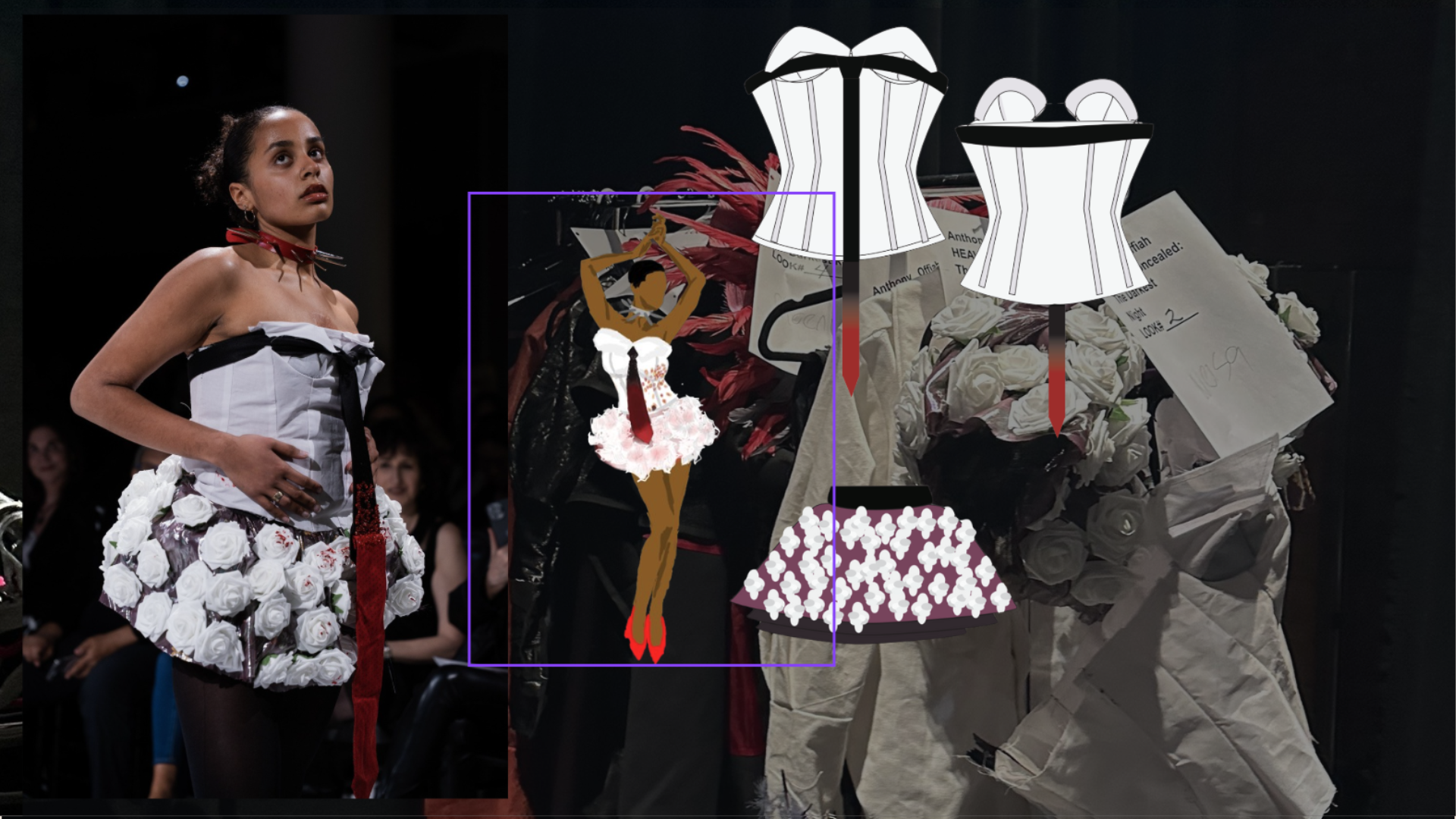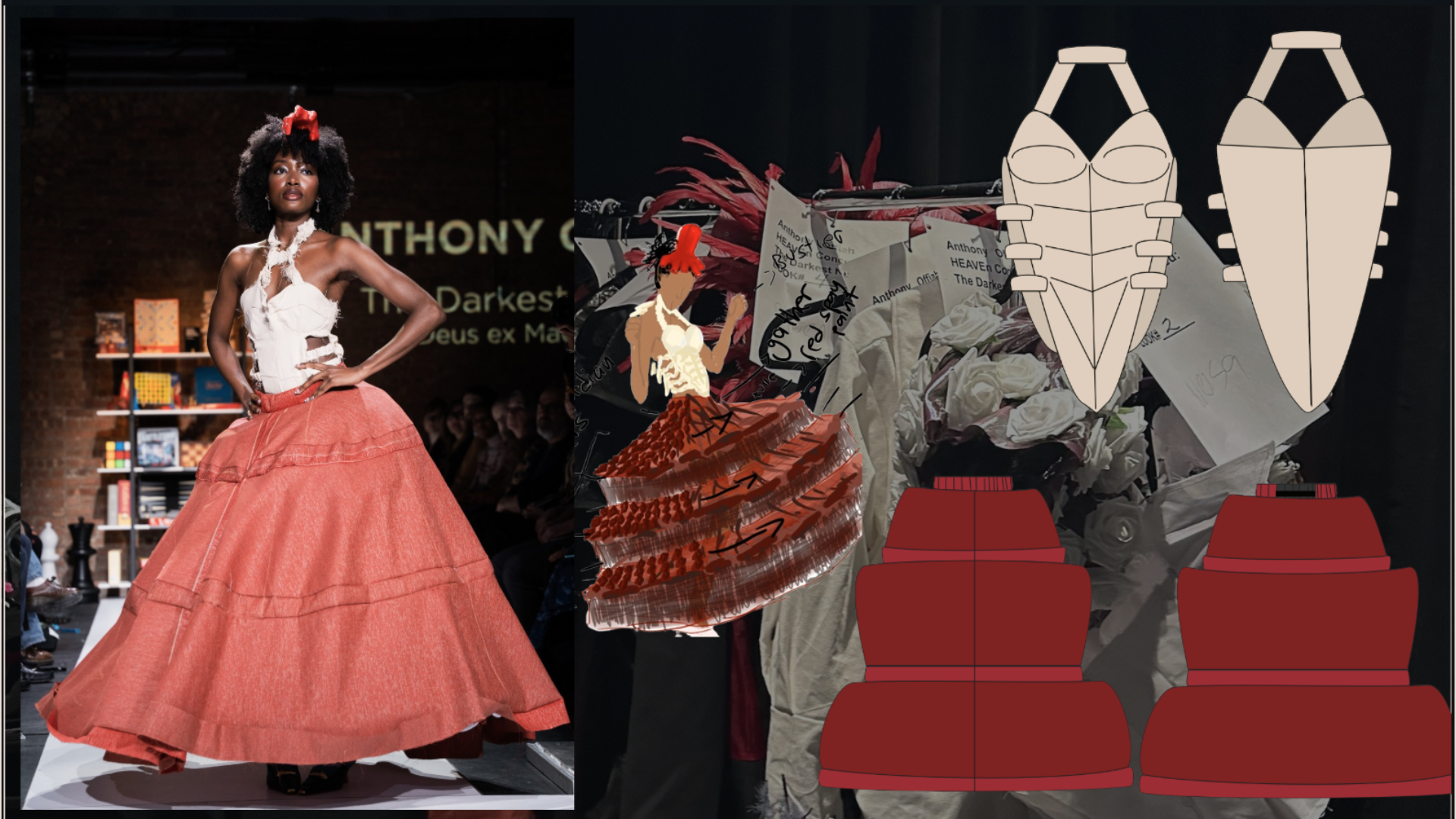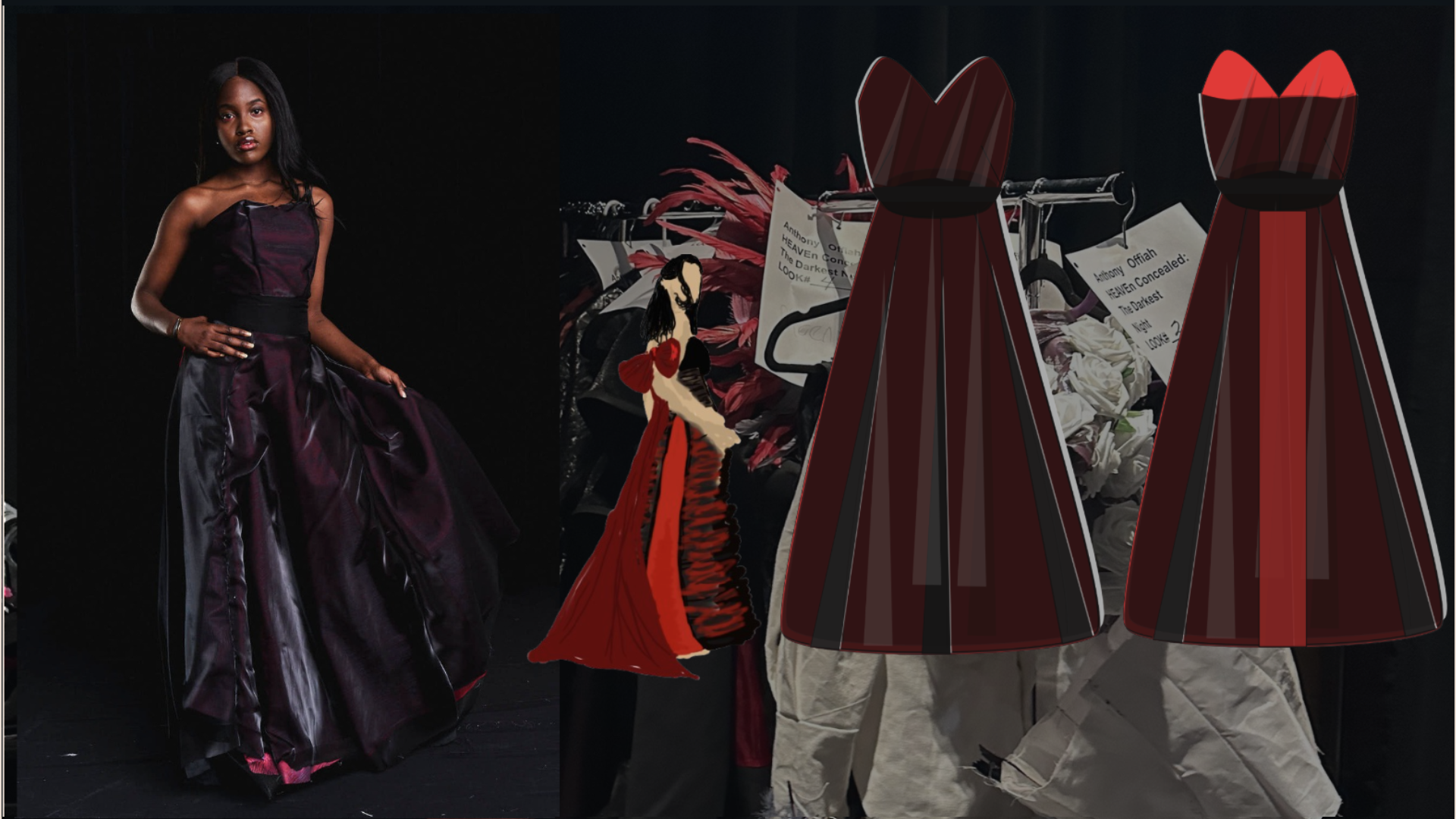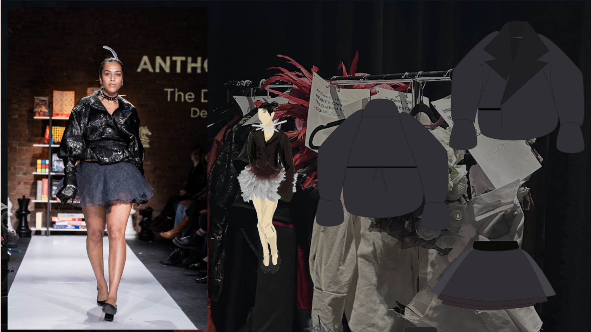 My artistic process began with me reviewing very old work I had done before I could sew. It was important that this collection be my opus as a designer and meaningfully incorporate the things I loved when I first started sketching and ideating. Something I found was a dark, moody feel, reminiscent of Alexander McQueen, an idol of mine. Creating a custom scent at Olfactory also helped me with ideating by putting me in a woeful mood. My collections all fall under the name Heaven Concealed. I came up with the name many years ago, and it represents my aversion to hegemony and religious abstractions that are the foundation for rules that define and restrict my life and work as a peculiar person and artist. I wanted to fall back on that message with a story equally as provocative. I found myself visiting galleries and researching modern art with gruesome undertones. A favorite of mine is The Clinic of Dr. Gross by Thomas Eakins.