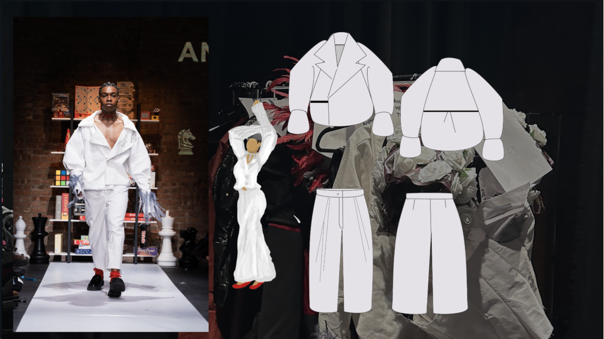 Each garment is a snapshot as the viewer is thrust from their world into the scenes of another, where a protagonist faces apparitions embodying the corporeal forms of their fear and misfortune. The looks will fall into categories of either the apparitions or the protagonist, showcasing the torment they’ve weathered progressively against their former purity. The final look is that synergy is born out of acceptance in this fictional world where God, deus ex machina, is omnipotent. The protagonist will learn that benevolence and omnipotence cannot coexist and that predestination is as much of a comfort as it is a horror.