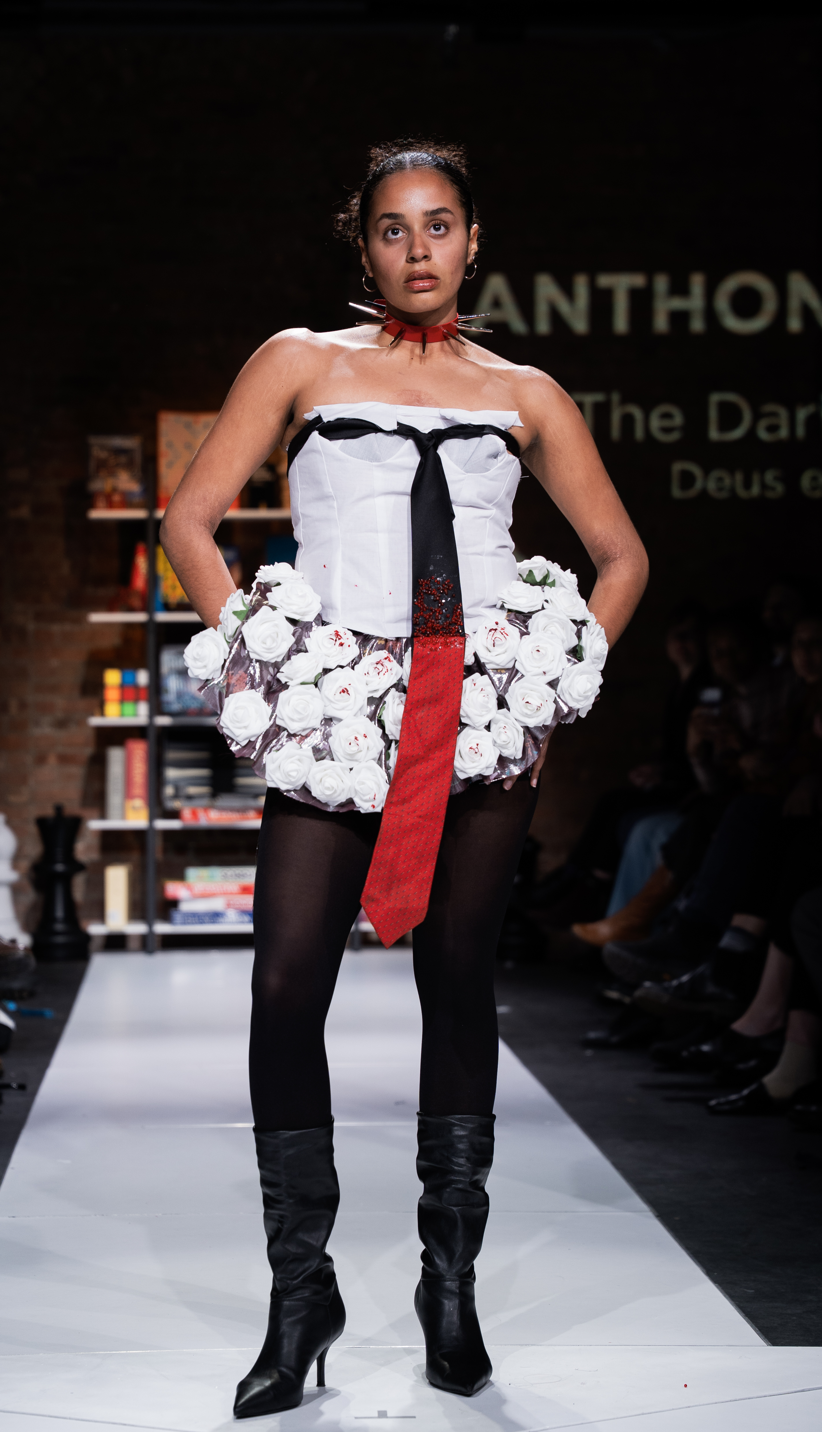 In addition to my visual research, I wanted to become a “paragon of darkness”. My personal style and image have always been a manicured version of an approachable, typical student. When developing TDN, I decided that my expression would need to completely envelop me and be a proponent of my identity instead of through experimentation. I decorated my body with tattoos revolving around my artistic processes to signal a coronation as Anthony the artist first, student second.