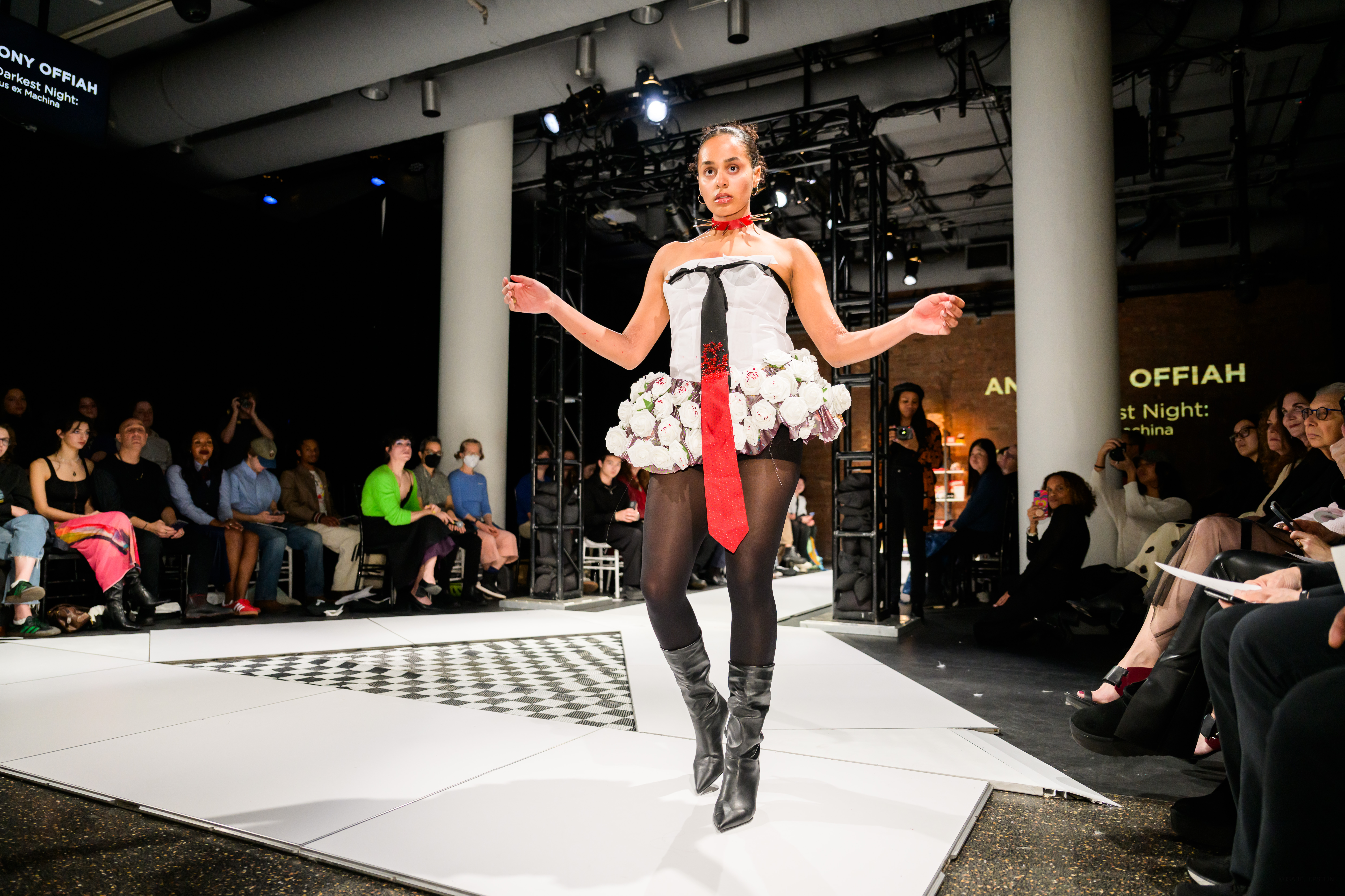 Each garment is a snapshot as the viewer is thrust from their world into the scenes of another, where a protagonist faces apparitions embodying the corporeal forms of their fear and misfortune. The looks will fall into categories of either the apparitions or the protagonist, showcasing the torment they’ve weathered progressively against their former purity. The final look is that synergy is born out of acceptance in this fictional world where God, deus ex machina, is omnipotent. The protagonist will learn that benevolence and omnipotence cannot coexist and that predestination is as much of a comfort as it is a horror.